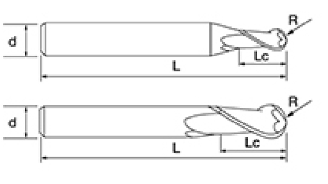| Nie. | Średnica D | Kąt R R | Długość fletu Lc | Długość całkowita L | Średnica chwytu d | Liczba ostrzy F |