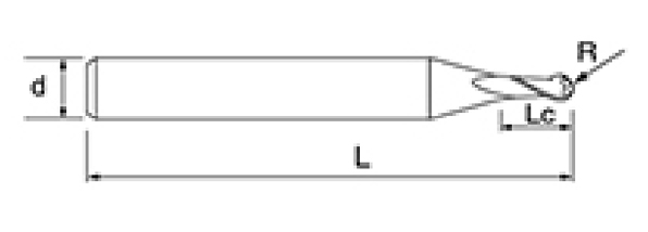 | Nie. | Średnica D | Kąt R R | Długość fletu Lc | Długość całkowita L | Średnica chwytu d | Liczba ostrzy F |