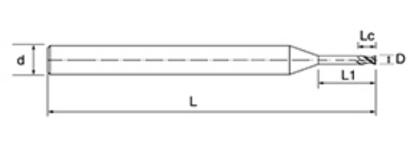 | Nie. | Średnica D | Długość fletu Lc | Efektywna długość L1 | Długość całkowita L | Średnica chwytu d | Liczba ostrzy F |