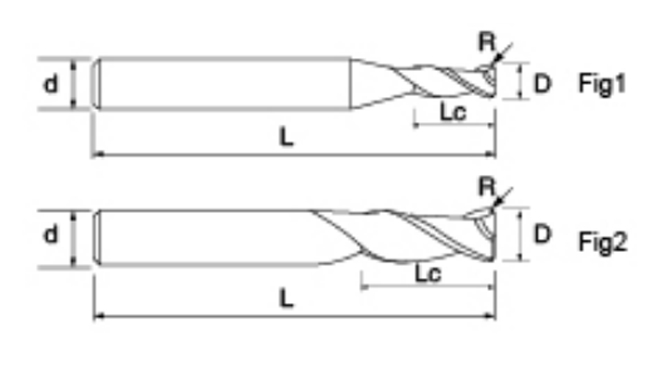 | Nie. | Średnica D | Kąt R R | Długość fletu Lc | Długość całkowita L | Średnica chwytu d | Liczba ostrzy F |