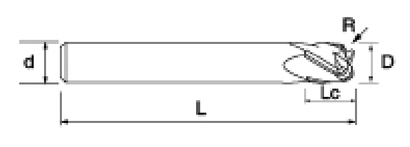 | Nie. | Średnica D | Kąt R R | Długość fletu Lc | Długość całkowita L | Średnica chwytu d | Liczba ostrzy F |