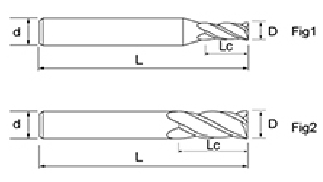| Nie. | Średnica D | Długość fletu Lc | Długość całkowita L | Średnica chwytu d | Liczba ostrzy F |