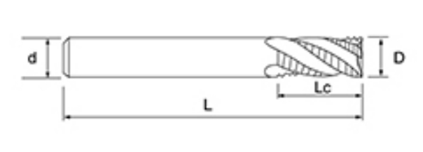 | Nie. | Średnica D | Długość fletu Lc | Długość całkowita L | Średnica chwytu d | Liczba ostrzy F |
