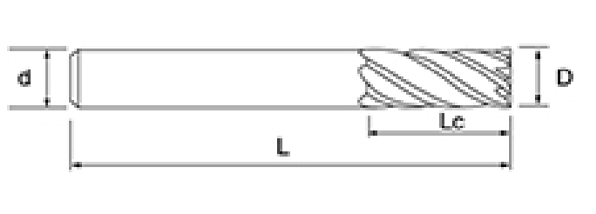| Nie. | Średnica D | Długość fletu Lc | Długość całkowita L | Średnica chwytu d | Liczba ostrzy F |