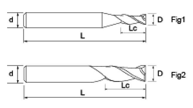 | Nie. | Średnica D | Długość fletu Lc | Długość całkowita L | Średnica chwytu d | Liczba ostrzy F |