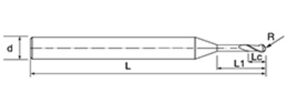 | Nie. | Średnica D | Kąt R R | Długość fletu Lc | Efektywna długość L1 | Długość całkowita L | Średnica chwytu d | Liczba ostrzy F |