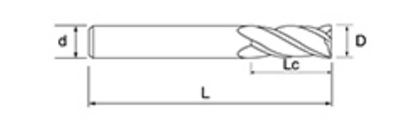 | Nie. | Średnica D | Długość fletu Lc | Długość całkowita L | Średnica chwytu d | Liczba ostrzy F |