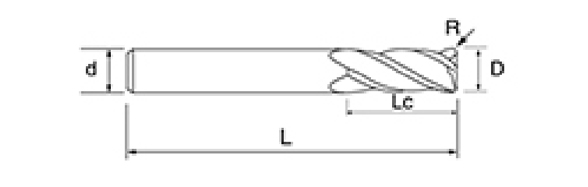 | Nie. | Średnica D | Kąt R R | Długość fletu Lc | Długość całkowita L | Średnica chwytu d | Liczba ostrzy F |
