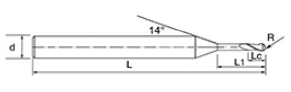 | Nie. | Średnica D | Kąt R R | Długość fletu Lc | Efektywna długość L1 | Długość całkowita L | Średnica chwytu d | Liczba ostrzy F |