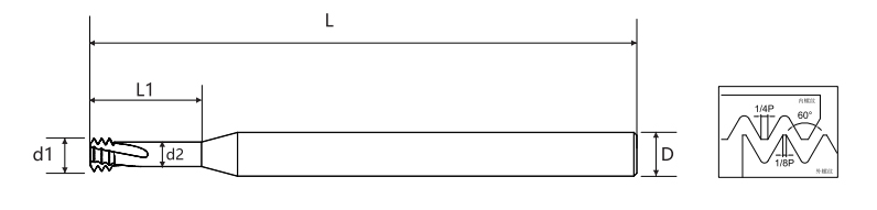| Skok | Grube zęby UNC | Drobne zęby UNF | Średnica ostrza d1 | Średnica unikania d2 | Efektywna długość ostrza L1 | Średnica uchwytu D | Długość całkowita L | Liczba ostrzy | Średnica dolnego otworu |